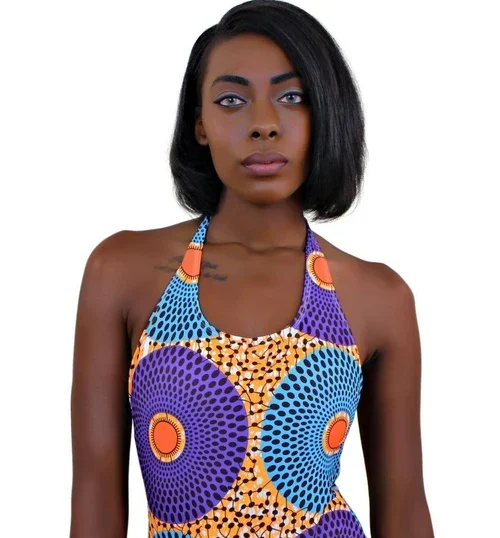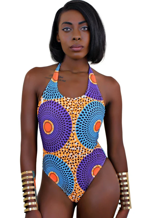 U neck, backless one-piece swimsuit featuring a high cut at the side of leg, open in the back, with padded bra, straps detailing swimwear.