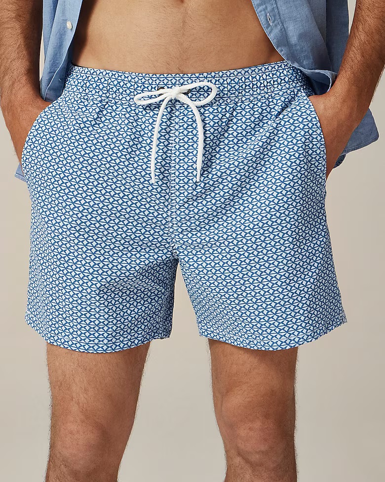 We’ve updated the classic swim trunk with a modern fit while keeping its old-school drawstring waist and adding a mesh lining to keep you comfortable in the water (and when you’re lounging poolside or on the beach). Our lightweight stretch swimsuits are crafted from 57 percent ECONYL® yarn, a 100 percent regenerated fiber spun from nylon waste including discarded fishing nets. It features a water-repellent finish made without fluorocarbons or PFCs. It also has UPF 50 protection, so this already hardworking fabric protects you from 98 percent of the sun’s harmful UVA and UVB rays.