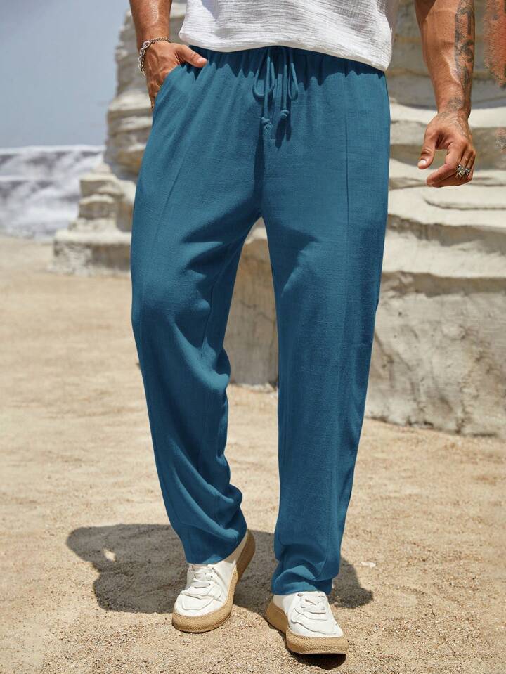Manfinity ModaGents Men’s Casual Solid Color Drawstring Waist Long Pants