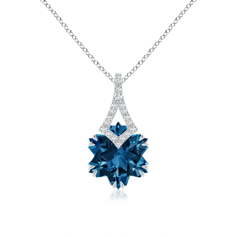 Capture the beauty of an icy winter wonderland with this delightful snowflake-cut London blue topaz pendant in 14k white gold. The greenish blue gemstone is claw-set and linked to a diamond-encrusted kite-shaped bale.